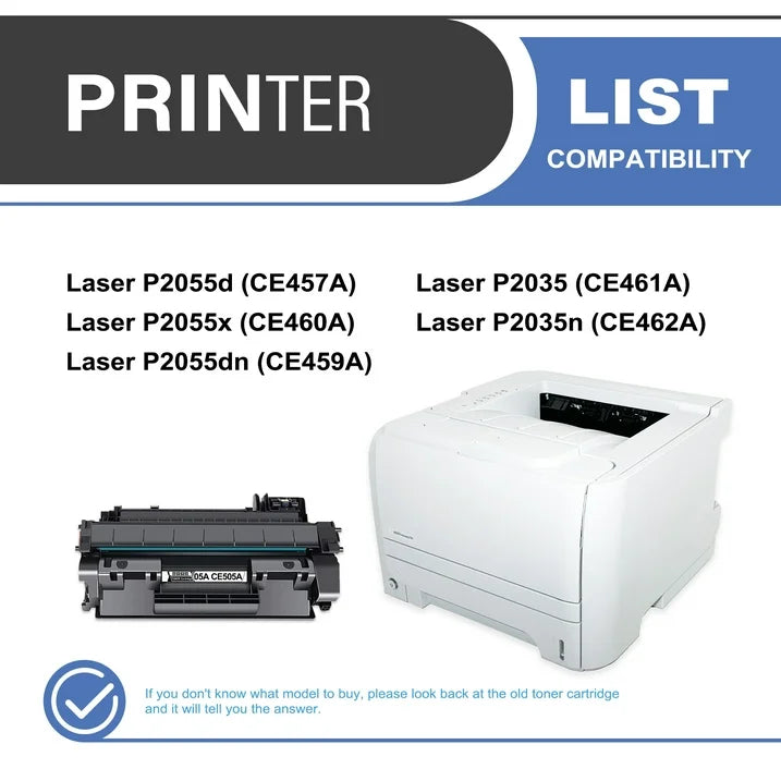 This cartridge works with: Laser P2035, P2035n, P2055d, P2055dn, P2055x Printer