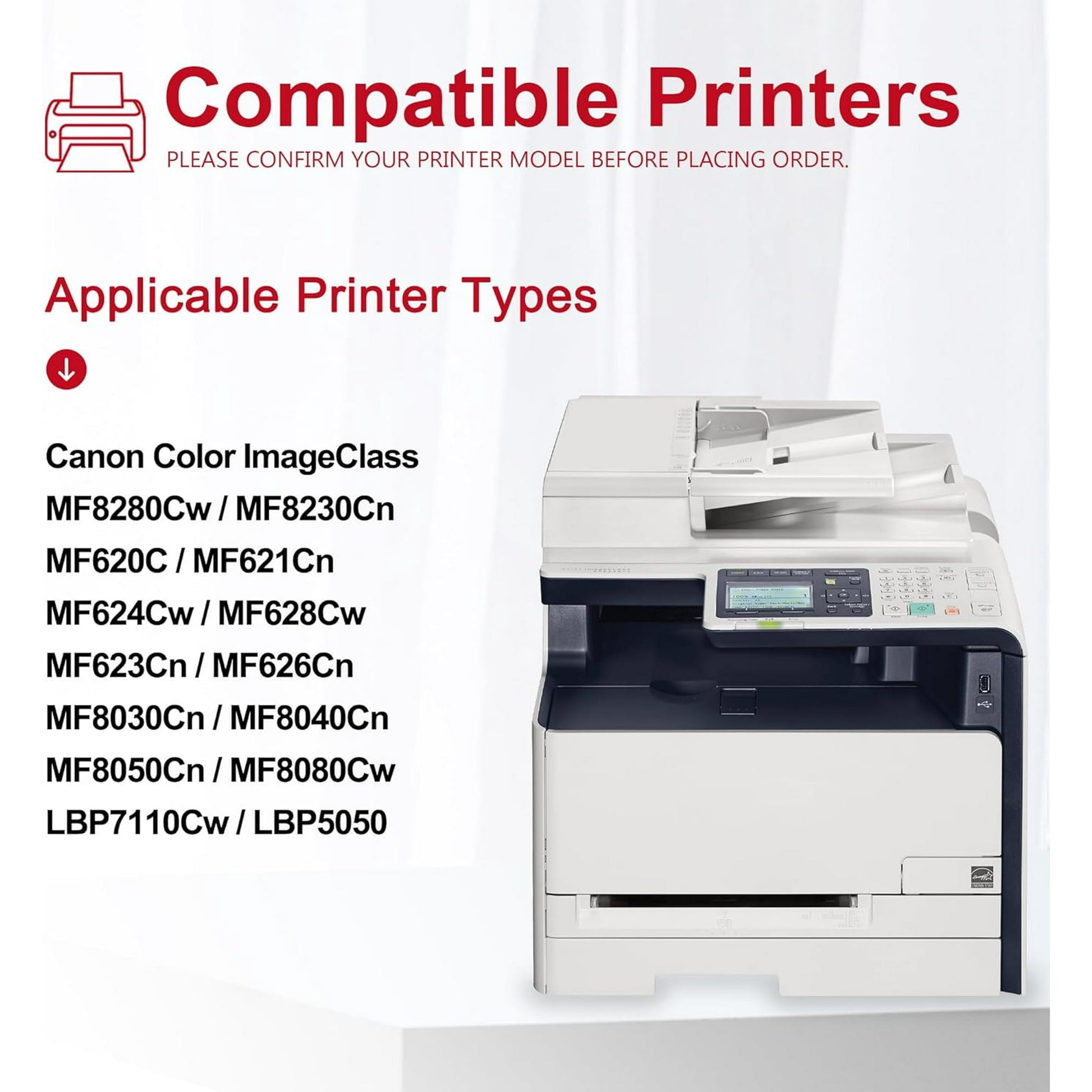 - Compatible Printer Models: imageCLASS MF8280Cw, MF8230Cn, MF620C, MF621Cn, MF624Cw, MF628Cw, MF623Cn, MF626Cn, LBP7110Cw, LBP5050, MF8030Cn, MF8040Cn, MF8050Cn, MF8080Cw Printers