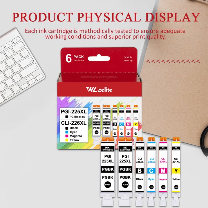 - 🖨️Package Contents: PGI-225 CLI-226 Ink Cartridge (6-Pack)(2*PGBK 1*Black 1*Cyan 1*Magenta 1*Yellow)