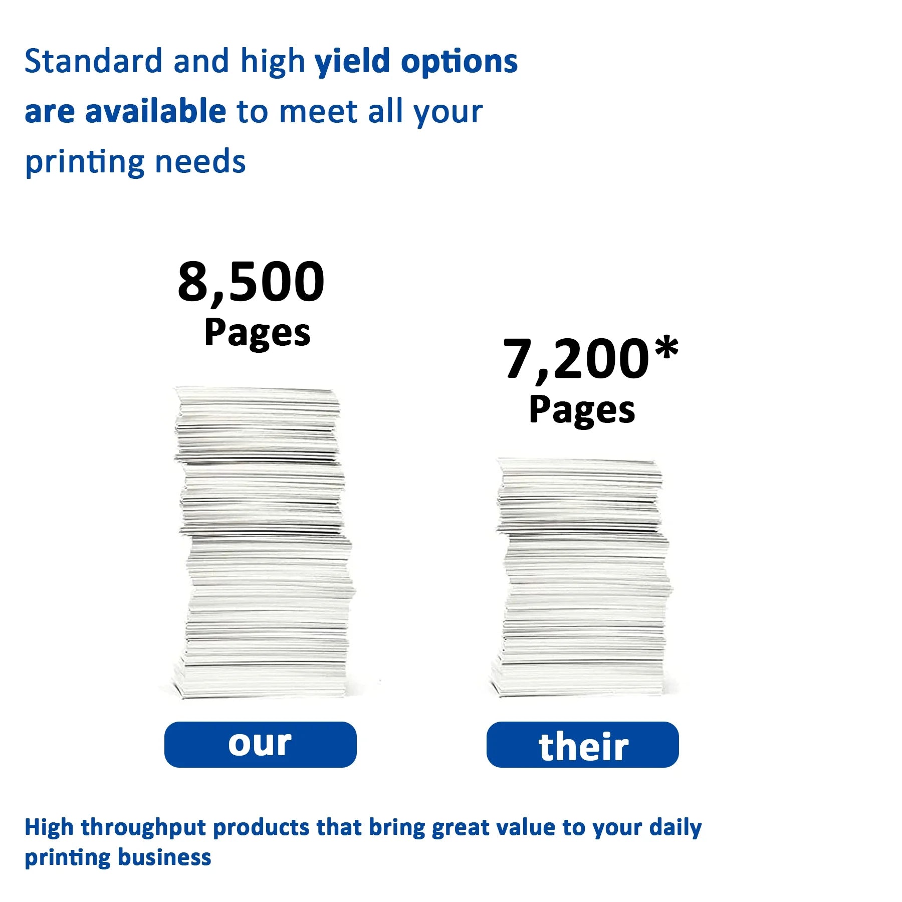 - Offers a high page yield of approximately 8,500 pages at 5% coverage, reducing the frequency of cartridge replacement and lowering office costs.