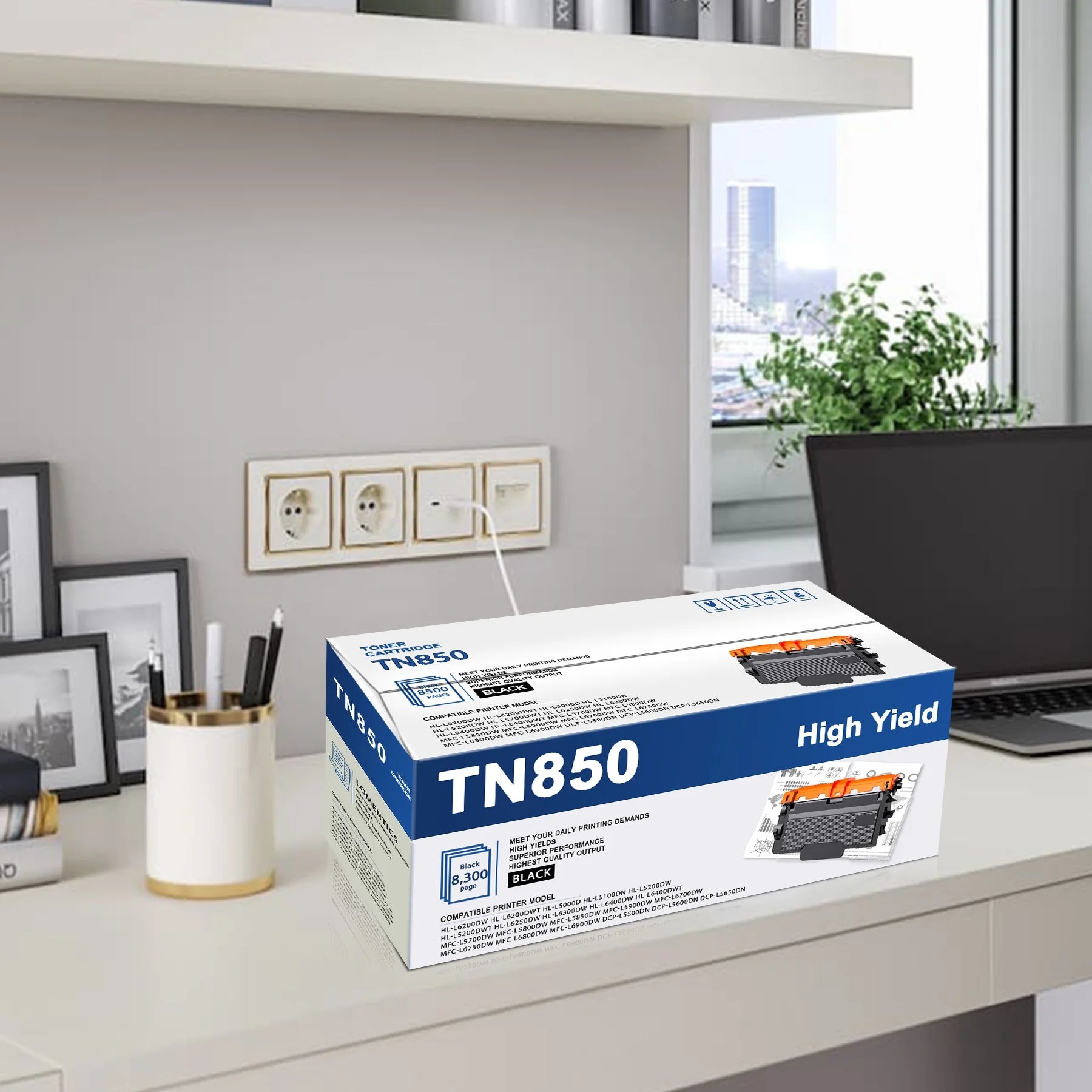 - Includes a 3-pack of high-yield TN850 toner cartridges for various Brother printer models, including MFC-L5900DW, MFC-L5850DW, MFC-L5700DW, MFC-L6750DW, MFC-L5800DW, MFC-L6800DW, MFC-L6700DW, MFC-L6900DW, DCP-L5600DN, DCP-L5500DN, DCP-L5650DN, HL-L6400DWT, HL-L6400DW, HL-L6300DW, HL-L5200DW, HL-L5100DN, HL-L5200DWT, HL-L6250DW, HL-L6200DW, and HL-L6200DWT.